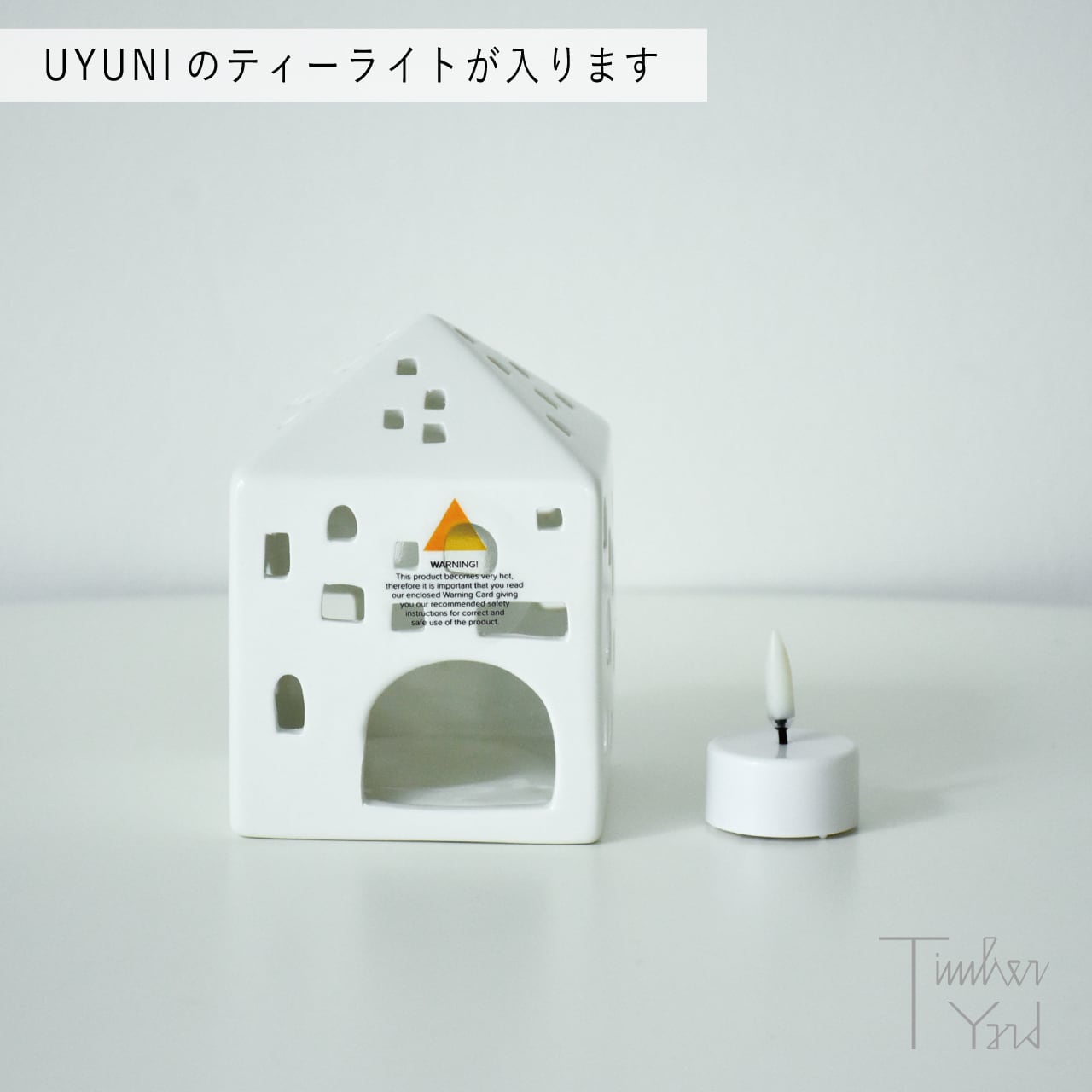 セラミック製キャンドルホルダー、タウンハウス。深みのある白の外観は美しく洗練されていますが、窓は手作業でくり抜かれており温かみの感じられる素敵なお家です。夕方ごろからキャンドルを灯し少しずつ暗闇が増していくと、窓から灯りが漏れる幻想的な光景は忘れられないものになります。「Urban(都市、都会)」が語源のシリーズなので、いくつか揃えて街並みのように楽しむのもおすすめです。キャンドルを灯さずともオブジェのように、またクリスマスの時期以外でも使うことができます。