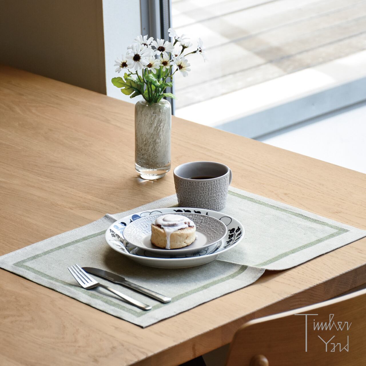 ライナはリネン 100%なのでプレイスマットに少し抵抗のある方でも使いやすいと思います。プレイスマットがあると大切なテーブルを守れたり、お皿やカップを置くときの音が上品になったり、その日の器や気分に合わせて食卓の雰囲気を変えられたりすごく楽しいですよ◎