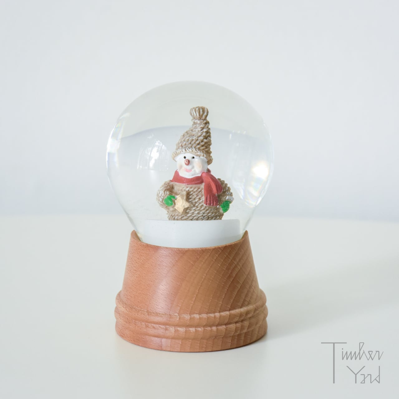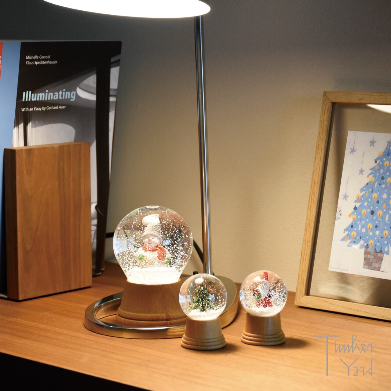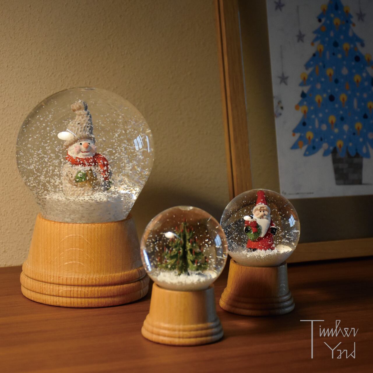 店頭でも毎年人気のスノードーム。別注の木製台座は木の温かみを感じるナチュラルな雰囲気が魅力です。木特有の模様や節が見られる場合もありますが、世界に一つのスノードームとして、個性をお楽しみください。
