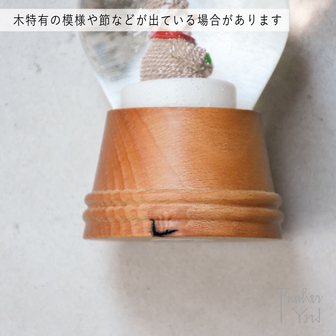店頭でも毎年人気のスノードーム。別注の木製台座は木の温かみを感じるナチュラルな雰囲気が魅力です。木特有の模様や節が見られる場合もありますが、世界に一つのスノードームとして、個性をお楽しみください。