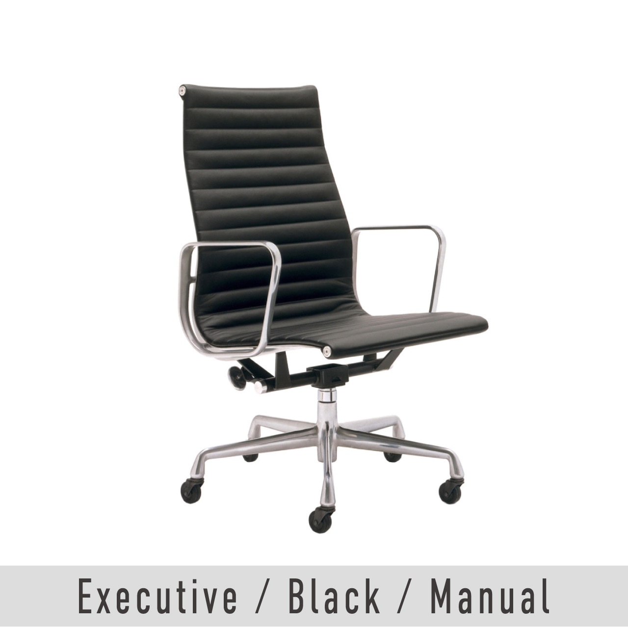 Herman Miller|イームズアルミナムグループ エグゼクティブチェア[皮革 & ブラック / 手動(座面高さ調節)/ 5スターベースキャスター]
