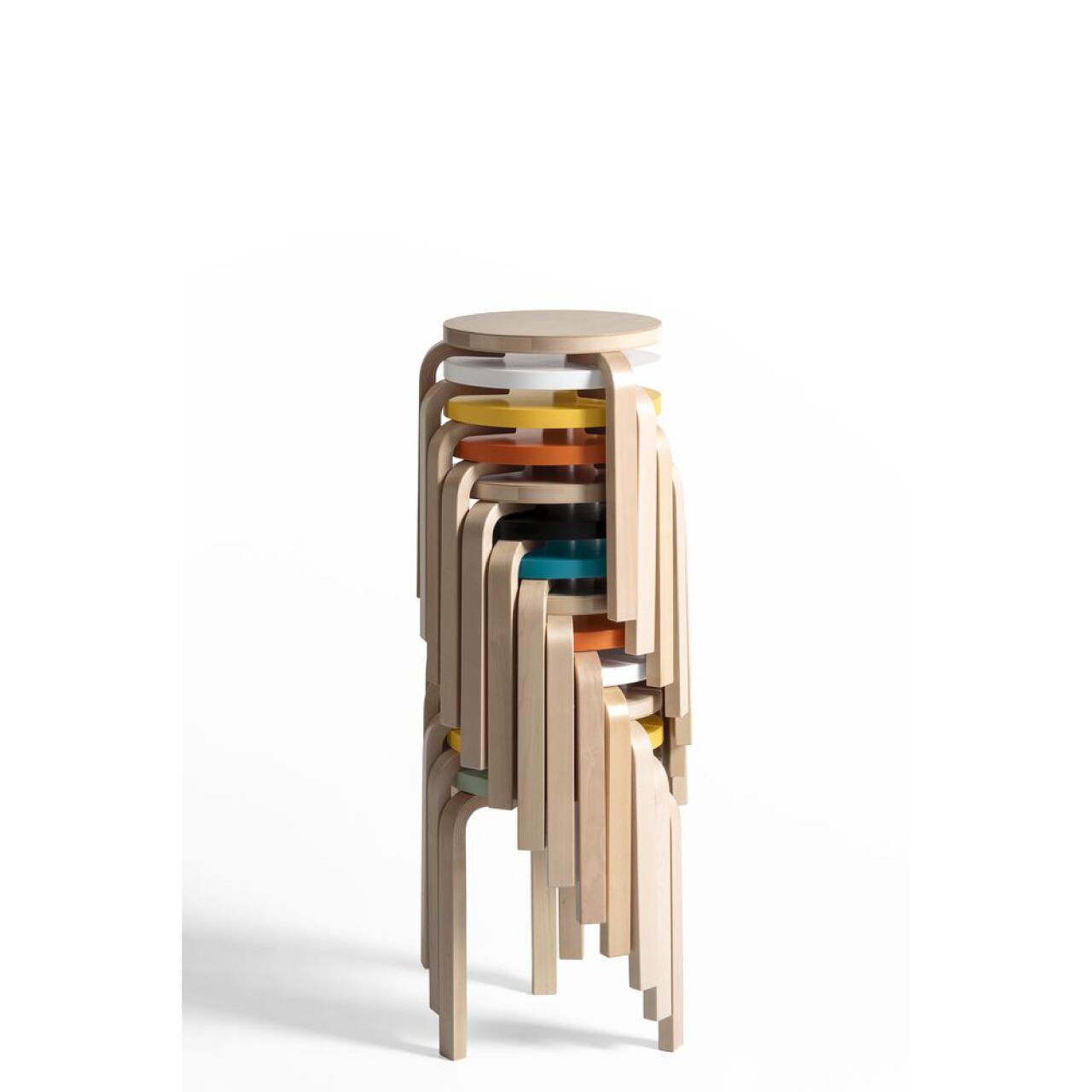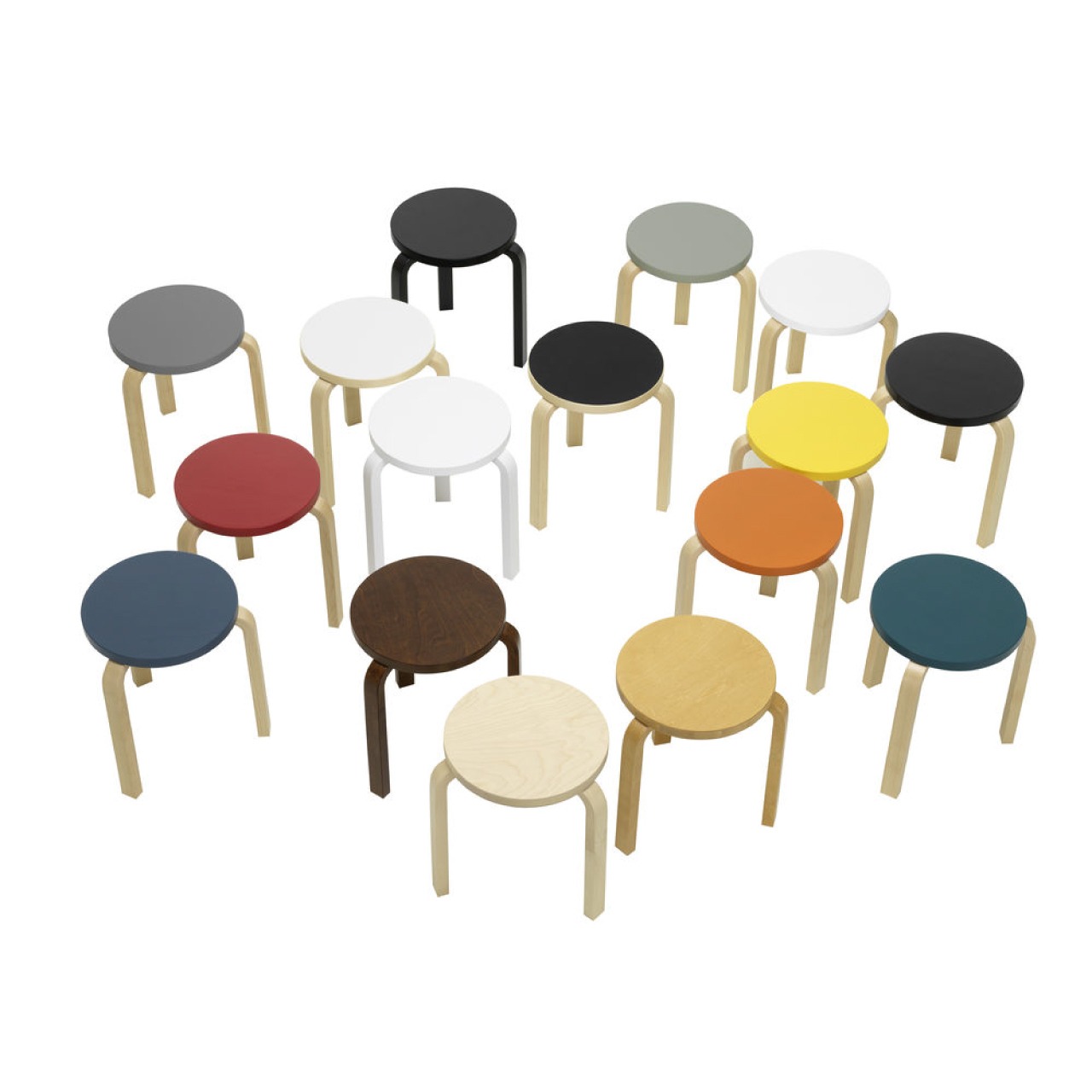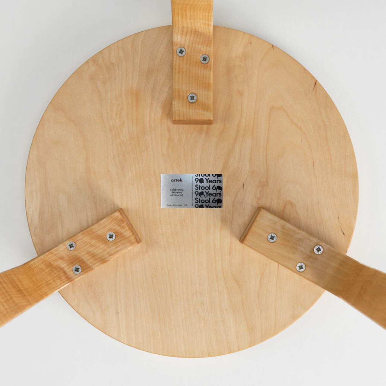 アルヴァ・アアルトにより1933年にデザインされた「スツール 60」は、座面と3本の脚という最小限の要素で形作られています。円形の座面の裏に直接脚を取り付けるというシンプルな構造で、簡単に組み立てを行うことができます。フィンランドの国内外へと出荷された「スツール 60」、また四本脚の「スツール E60」はこれまでに数百万脚にのぼり、時を越え、国や文化を越え、世界中で愛され続けています。